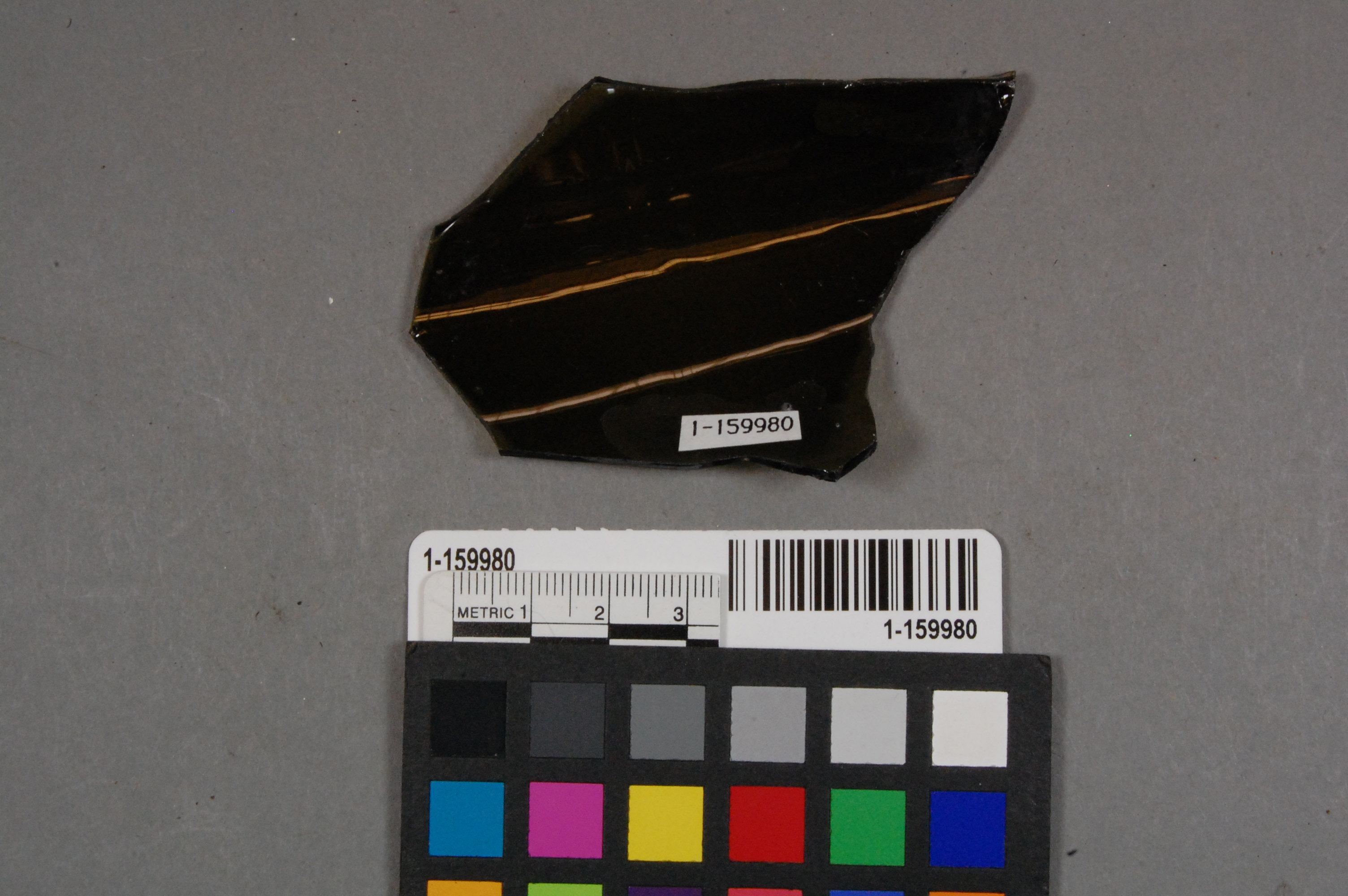 - Body fragment of thin olive bottle glass with elongated bubbles