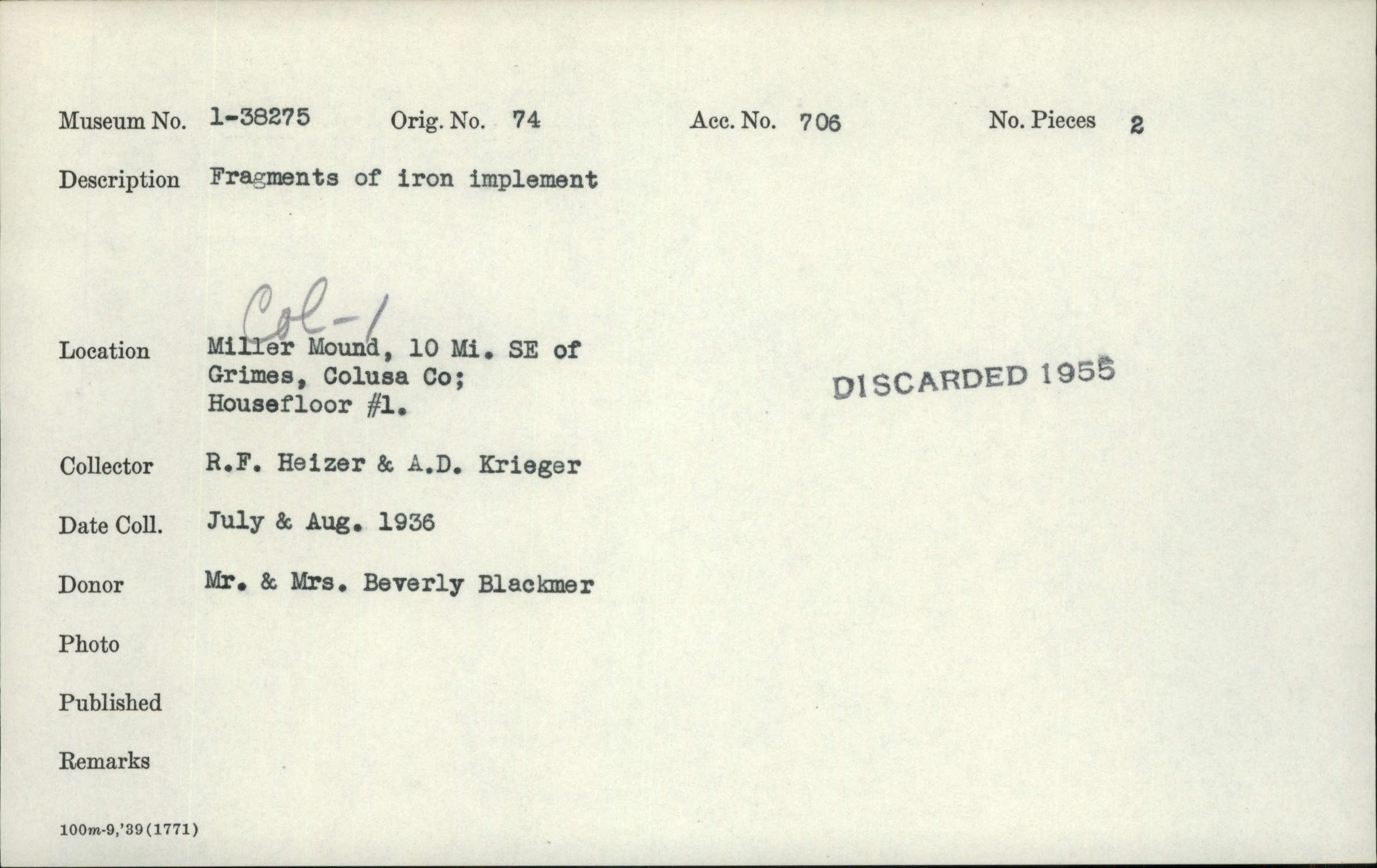 - CA-Col-1 (Miller Mound), Colusa County, California
