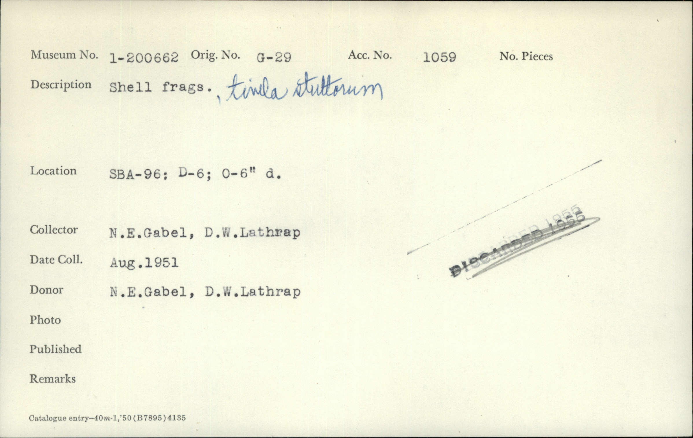 - Shell fragments, timela stuttorum