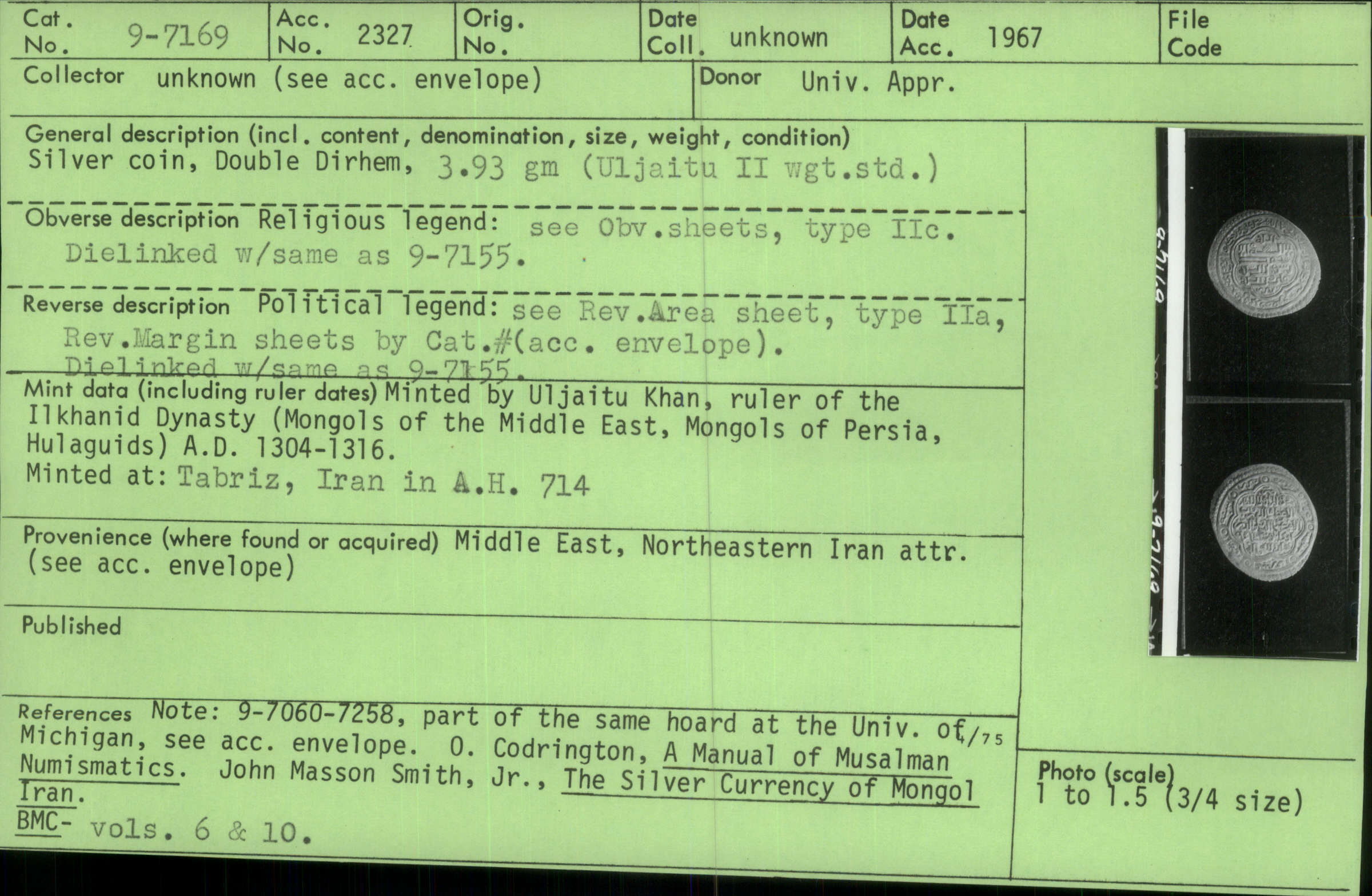 - Silver coin, Double Dirhem, 3.93 gm (Ghazan-Uljaitu II weight standard)